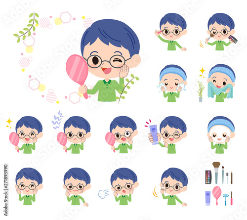 children, boy, kindergarten, toddler, people, man, green, glasses, beauty, make-up, make-up, cosmetic, skincare, skin, face, teak, towel, wipe, packet, acne, good, freckle, trouble, resolution, character, sweet, flat, vector, affinity