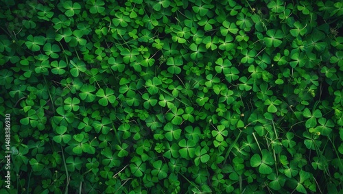 Green clover carpet providing a textured, herbal-based backdrop symbolizing luck and prosperity