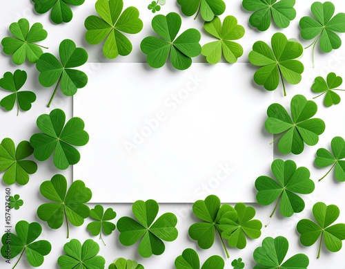 clover, green, white, frame, leaf, plant, floral, spring, nature, border, empty, blank, design, pattern, image, background, flat, layout, graphic, arrangement, symmetry, fresh, bright, realistic, detail, digital, wallpaper