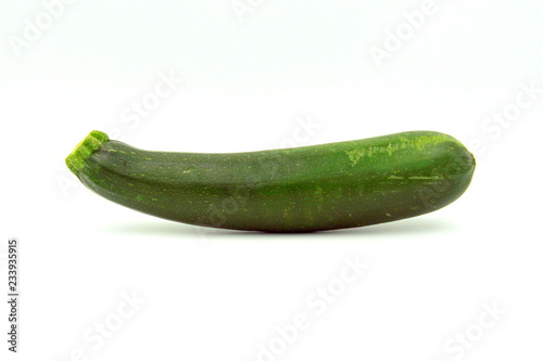 Green courgette or zucchini against a white background.