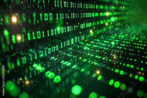 Green Dark Binary Code with Data Streaming Background created with Generative AI