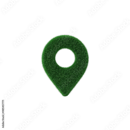 Green eco location pin icon with grass texture, isolated on transparent background.