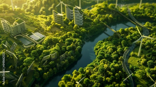 Green Energy Infrastructure, Sustainable Development, Modern renewable sources powering the future. Wallpaper, banner design, brochure, web, background template, concept of sustainability,