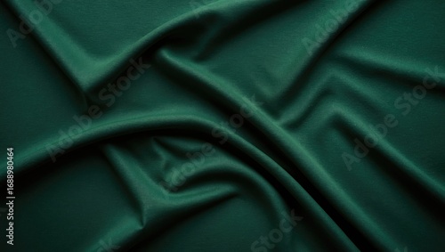 Green fabric with soft folds and smooth texture. Fabrics and textiles, textile material. Fabric design. The concept of fabric texture and textile patterns.