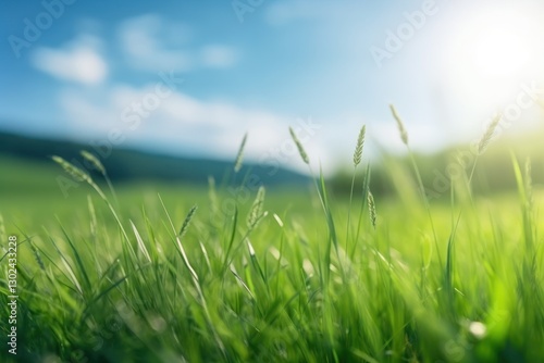landscape, green, field, grass, blue, sky, sun, spring, natural, panoramic, beautiful, scenic, idylli, countryside, serene