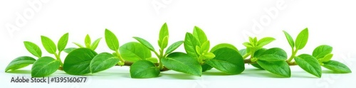 Green foliage with a few sprouts isolated on white background, plant life, botanical