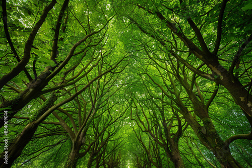Green forest landscape with many trees