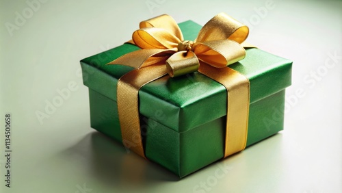 Green gift box with golden ribbon, perfect for Christmas, birthdays, or special occasions , festive, present, holiday, celebration