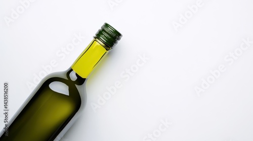 Green Glass Bottle with Olive Oil on Light Background for Culinary Use