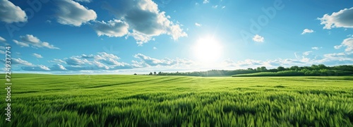 field, sky, grass, nature, meadow, sunlight, landscape, sun, green, summer, agriculture, rural, pasture, spring, season, plant, land, cloud, sunny, horizon, countryside, farm, lawn, blue, country, beautiful, background, bright, environment, scene, sunrise, sunset, day, light, idylli, morning, weather, cloudy, cloudscape