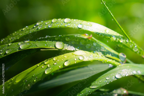 Green grass in nature with raindrops