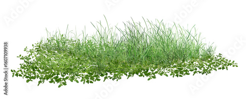 green grass isolated on white/Green grass and natural foliage in meadow field, isolated PNG for design use.