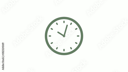 Green gray 12 hours circle clock icon on white background,clock icon