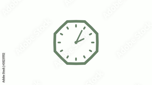 Green gray counting down 12 hours clock icon on white background,clock icon
