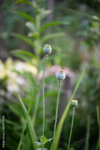 green heads with poppy seeds in nature