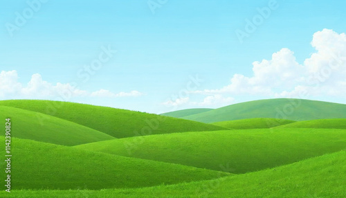 Green Hills Meadows Under Blue Sky White Clouds Panorama, wallpaper,