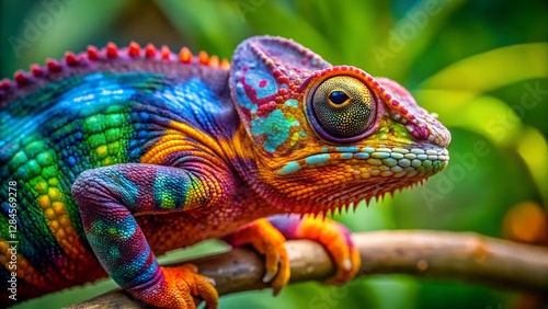 chameleon, lizzard, reptile, animal, green, nature, wildlife, eye, colourful, pet, wild, madagascar, exotic, macro, isolated, creature, eye, vertebrate, dragon, white, scale, tree branch, camouflage, closeup