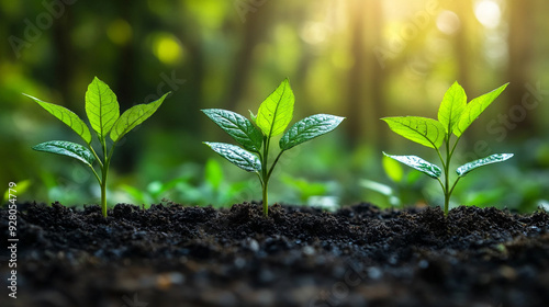 green landscape showcases sustainable development with flourishing vegetation and modern eco-friendly structures, symbolizing growth, harmony, and environmental progress