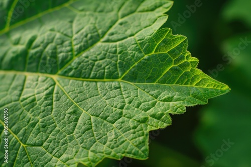 Green leaf with prominent veins and texture, creating a vibrant display of natural beauty