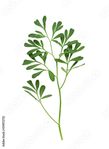 Green leaves and twigs of rue (Ruta graveolens) isolated
