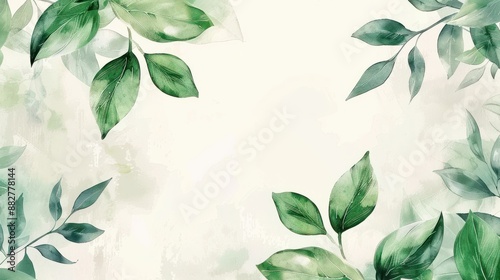 Green leaves snd flower watercolor background invitation template, Generative AI
