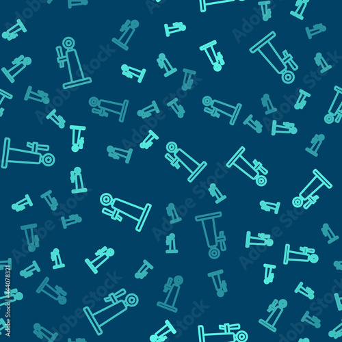 Green line Beer tap icon isolated seamless pattern on blue background. Vector