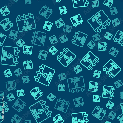 Green line Day calendar with date July 4 icon isolated seamless pattern on blue background. USA Independence Day. 4th of July. Vector.