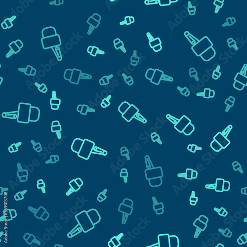 Green line Lockpicks or lock picks for lock picking icon isolated seamless pattern on blue background. Vector Illustration.