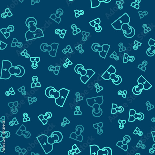 Green line Monk icon isolated seamless pattern on blue background. Vector.