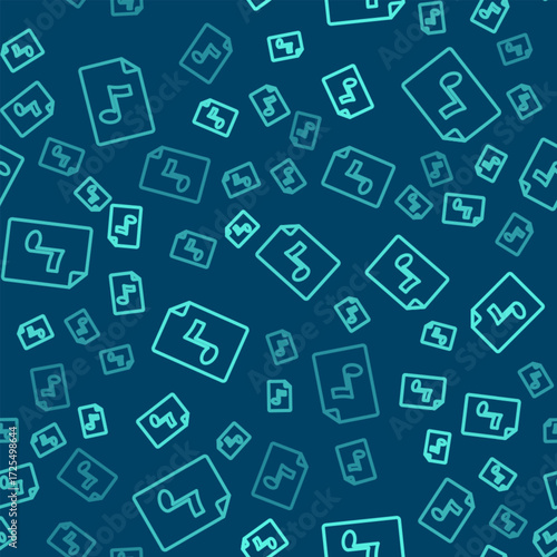 Green line MP3 file document. Download mp3 button icon isolated seamless pattern on blue background. Mp3 music format sign. MP3 file symbol. Vector
