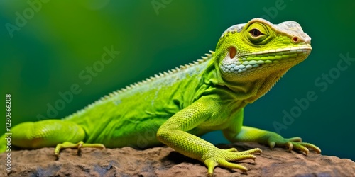 Green Lizard Isolated on White Background. Beautiful Reptile with Vivid Green Color, Perfect Animal for Nature and Wildlife Concept