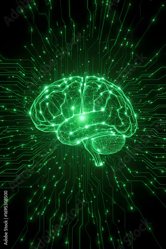 ai, brain, neural, circuit, digital, datum, flow, binary, glowing, aglow, green, emerald, cyber, science fiction, abstract, futuristic, artificial intelligence, network, visualisation, high technology, intelligent, matrix, hologram, streaming, background, gradient, energy, signal