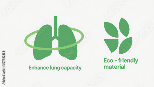 Green lung lobes and leaf patterns represent enhanced lung capacity and environmentally friendly materials, suitable for promoting healthy exercise and eco-friendly products.