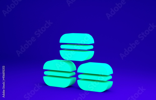 Green Macaron cookie icon isolated on blue background. Macaroon sweet bakery. Minimalism concept. 3d illustration 3D render.