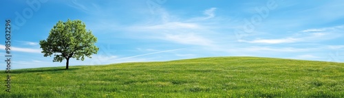 nature, background, environment, idylli, grass, floral, fresh, meadow, green, calmness, cloud, tree, wild, single, landscape, field, spring, rural, blue, scenery, with, peaceful, vibrant, in, silhouette, summer, sky, beauty, natural, banner