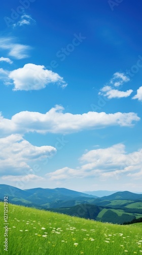 sky, blue, green, landscape, mountain, nature, cloud, grass, plant, background, cute, wallpaper, outdoors, scenery, field, hill, horizon, summer, travel, photo, land, agriculture, countryside, sunlight, growth, meadow, image, freshness, vibrant color, mountain chain, pasture, prairie, steppe, plain, day, background, calmness, cloudscape, rapeseed, idylli, plateau