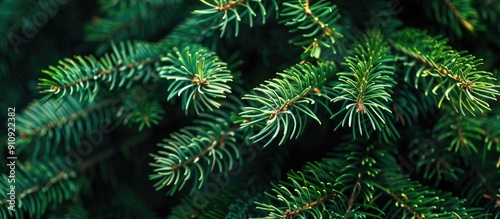 Green pine branches creating a festive Christmas fir tree background with copy space image