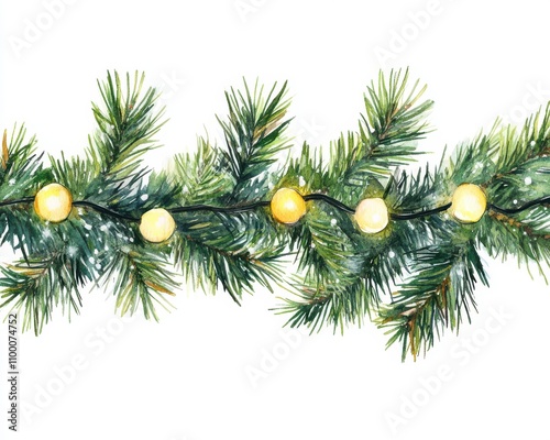 pine, garland, light, green, yellow, white, isolate, background, decor, holiday, shiny, display, winter, season, christmas, eco, design, twinkle, ambience, cosy, shine, hand-made, festive, event