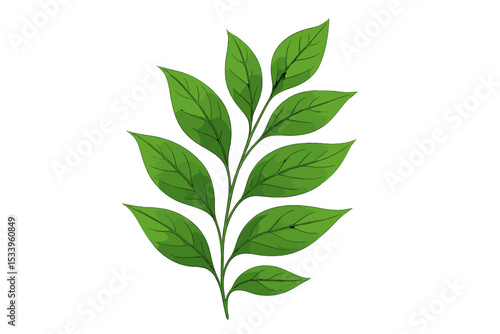 leaf, leaf, green, tree branch, plant, vector, illustration, nature, foliage, botanical, ecology, organic, fresh, isolated, stem, growth, spring, natural, flora, botany, twig, element, design, icon, symbol, eco, environment, simple, clean, bio, summer, herbal, white, background, tree, garden, greenery, sapling, freshness, vein, detailed