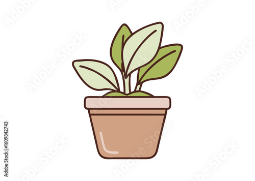 Green plant growing in an orange pot with a teal rim vector illustration