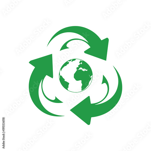 Green recycling symbol with earth globe centered in sustainable design