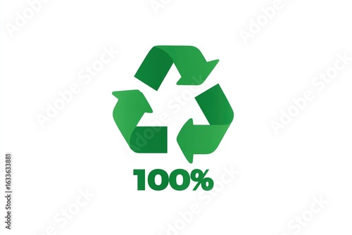 Green recycling symbol with the text 100%. Represents sustainability and environmental awareness. Simple and modern design for eco-friendly concepts.