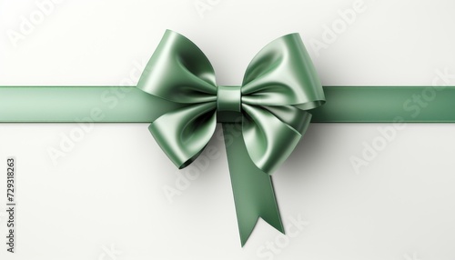 Green silk gift bow on white background, elegant decoration for gift giving, with copy space