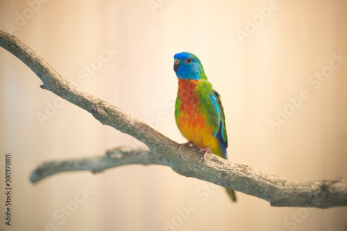 Green Splendid Parakeet bird perching on branch