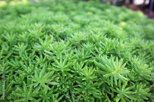 Green succulent plants that are planted in plots.