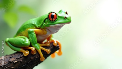 Green tree frog perched on white, vibrant color , green frog, frog, green