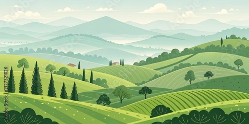 Green Tuscany Hills Landscape with Cypress Trees and Farmhouses, countryside ,italy
