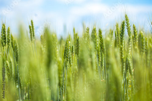 wheat, green, field, agriculture, grain, grass, farm, crop, cereal, sky, nature, barley, summer, plant, ear, harvest, blue, spring, food, farming, bread, corn, landscape, rye, grow, parasite, produce, ripe, new, healthy, macro, rural, sunrise, vegetable, yellow, sunlight, season, seed, stem, straw, growth, closeup