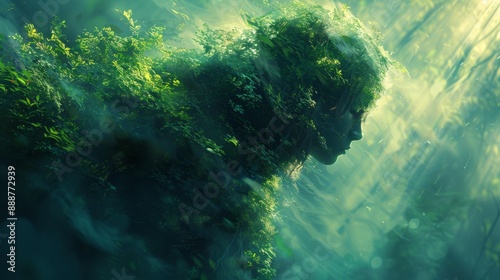 green, woman, silhouette, leaf, plant, nature, eco, environment, forest, foliage, portrait, face, natural, profile, art, organic, beauty, flora, sunlight, growth, fantasy, mystical, imagination, serenity, life, peaceful, harmony, aethereal, spring, greenery, wilderness, holistic, vibrant, texture, lush, botanical, environmentally friendly, creation, health, vitality, concept, abstract, surreal, transformation, verdant, ocean, underwater, sea
