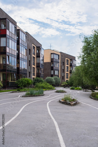 house, yard, street, summer, green, view, nature, road, urban, city, town, architecture, suburban, facades, landscape, home, sky, building, courtyard, outdoors, outside, residential, lawn, grass, beautiful, estate, tree, day, natural, lighting, daylight, exterior, vertical, house, europa, england, window